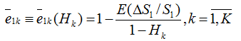Если рассматривать недопоставки только одного ведущего ресурса (первого), то надежность по выпуску k-го продукта может быть выражена через среднюю в диапазоне 0-ΔSH - эластичность e1k как